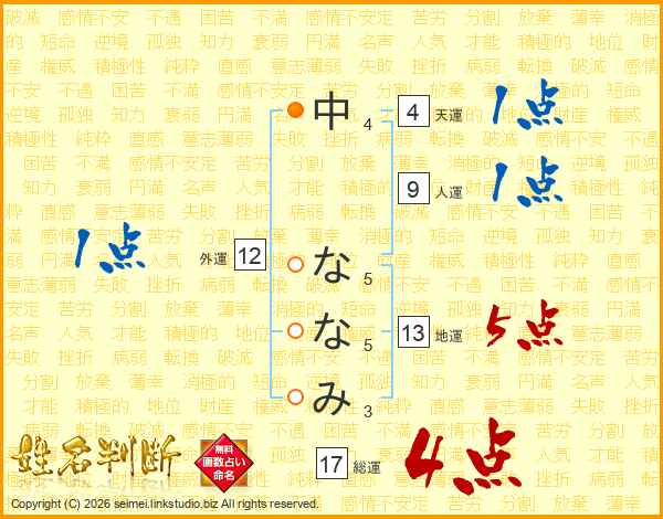 中ななみさんの総運は17画の4点!