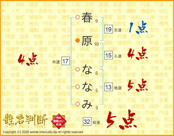 春原ななみさんの総運は32画の5点!