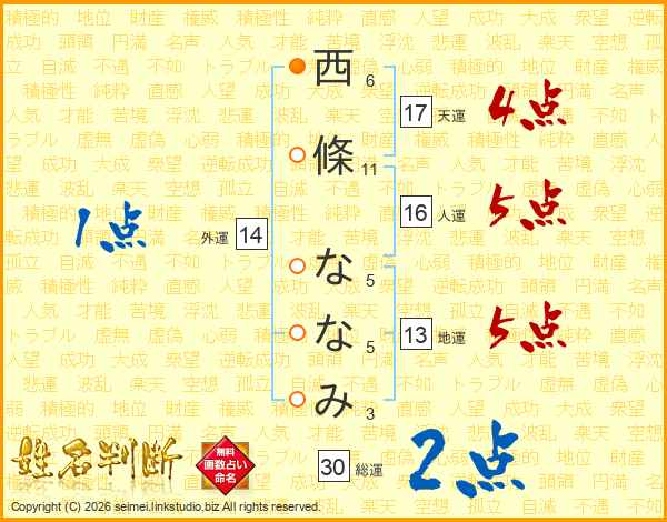 西條ななみさんの総運は30画の2点!