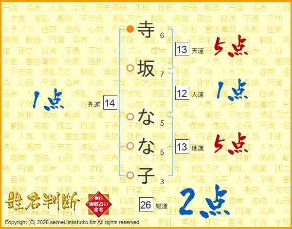 寺(6画)坂(7画) な(5画)な(5画)子(3画)
