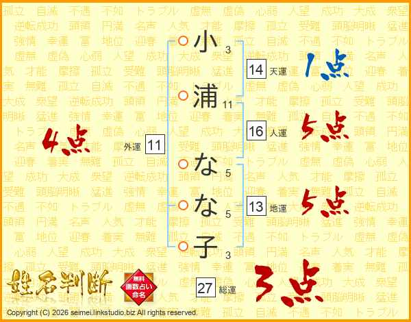 小浦なな子さんの総運は27画の3点!