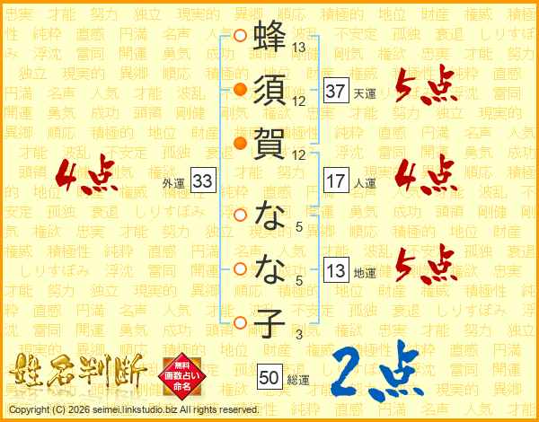 蜂須賀なな子さんの総運は50画の2点!