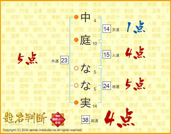 中庭なな実さんの総運は38画の4点!