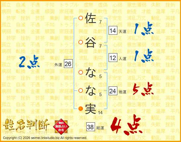 佐谷なな実さんの総運は38画の4点!
