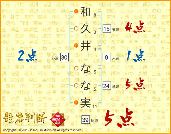 和久井なな実さんの総運は39画の5点!