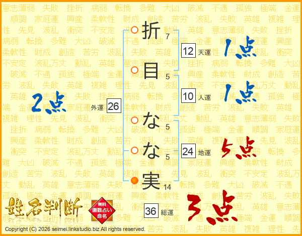 折目なな実さんの地運は24画の5点!