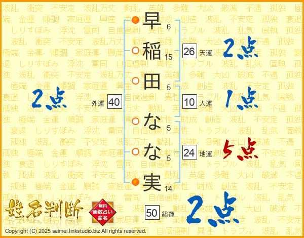 早稲田なな実さんの天運は26画の2点!