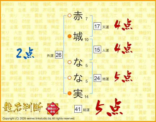 赤城なな実さんの総運は41画の5点!