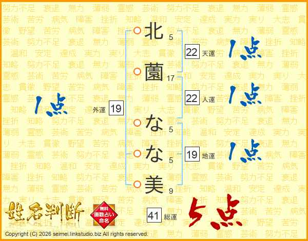 北薗なな美さんの総運は41画の5点!
