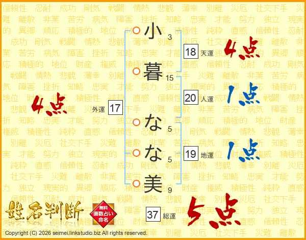 小(3画)暮(15画) な(5画)な(5画)美(9画)