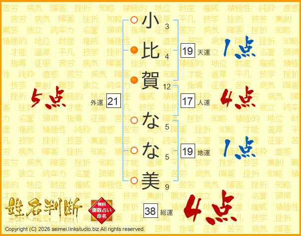 小比賀なな美さんの外運は21画の5点!
