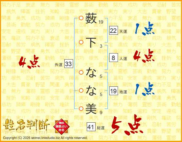 薮下なな美さんの総運は41画の5点!