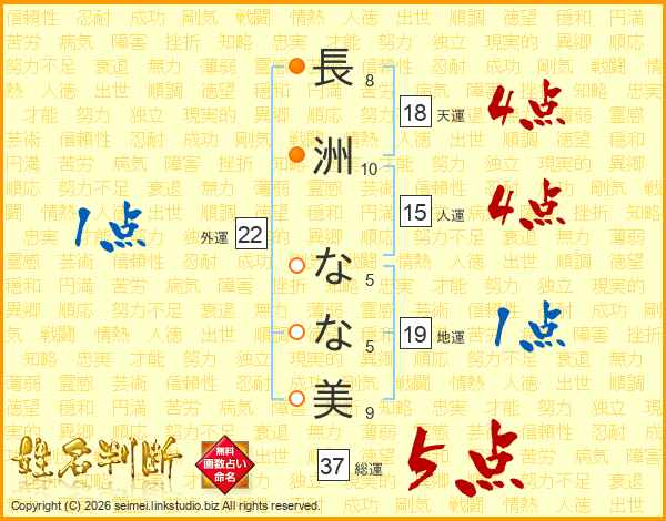 長洲なな美さんの総運は37画の5点!
