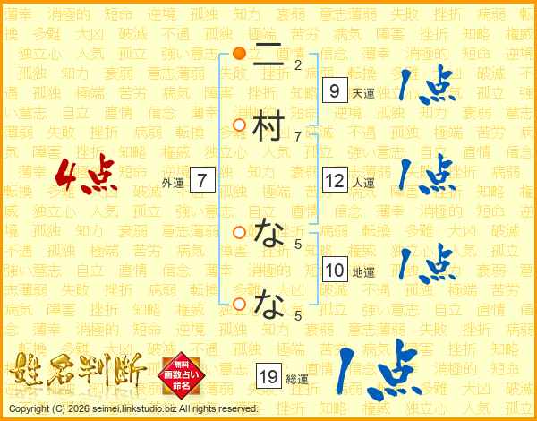 二村ななさんの外運は7画の4点!
