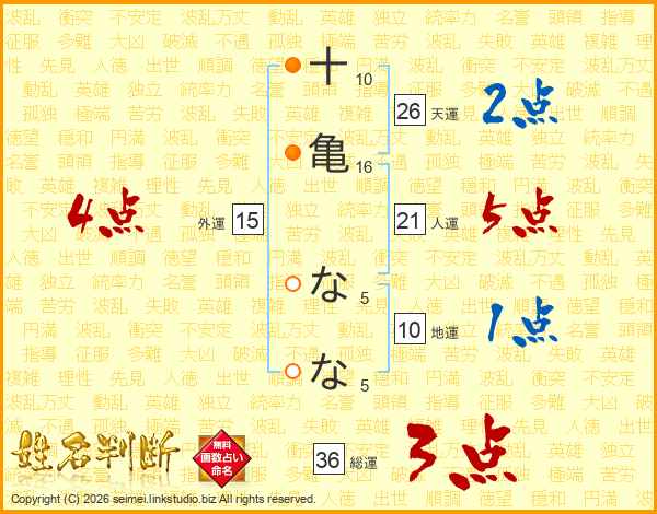 十(10画)亀(16画) な(5画)な(5画)