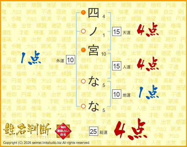 四ノ宮ななさんの天運は15画の4点!