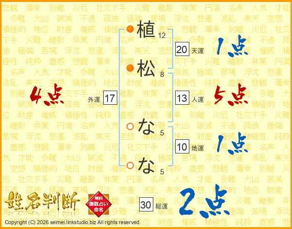 植松ななさんの外運は17画の4点!