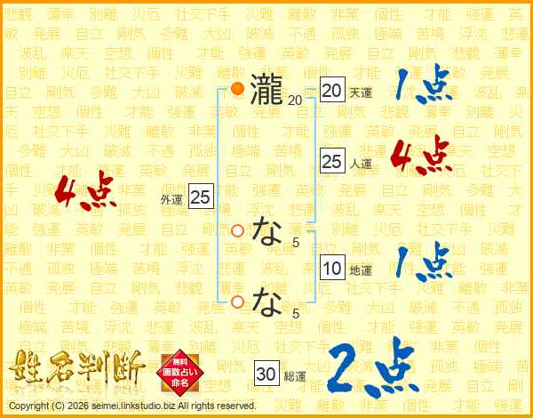 瀧ななさんの天運は20画の1点!