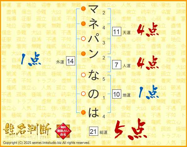 マネパンなのはさんの総運は21画の5点!