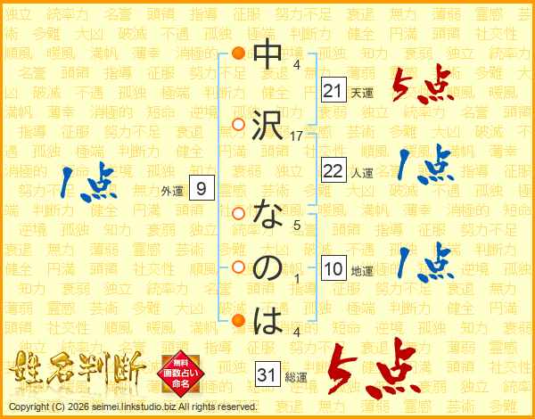 中沢なのはさんの総運は31画の5点!