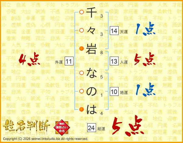 千々岩なのはさんの総運は24画の5点!