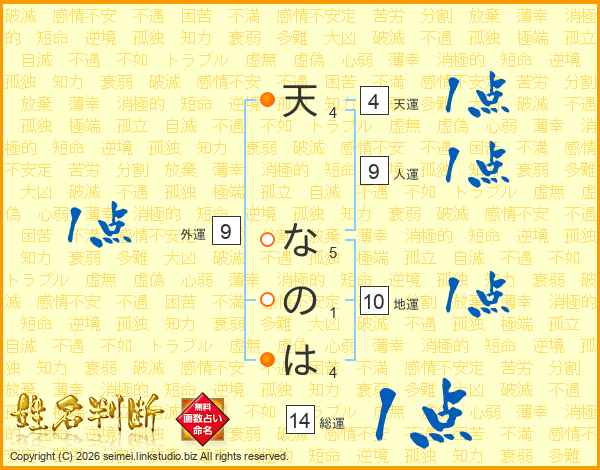 天なのはさんの総運は14画の1点!