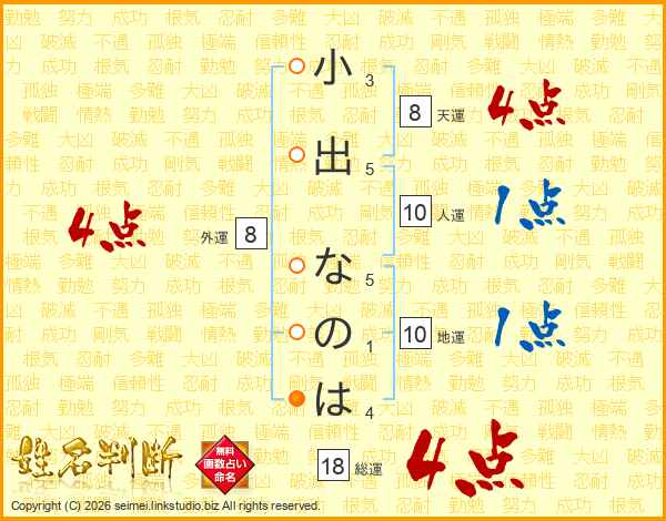 小出なのはさんの総運は18画の4点!