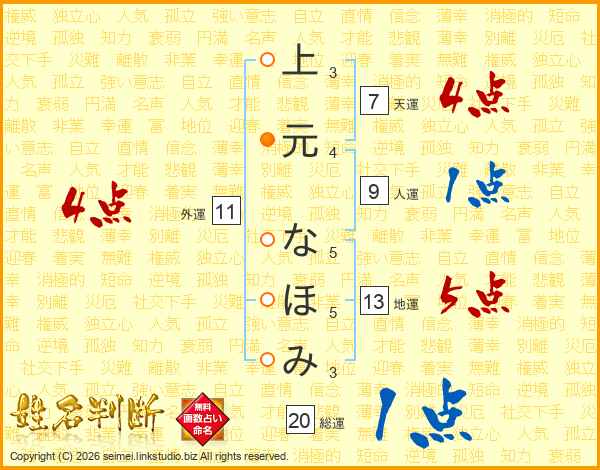 上(3画)元(4画) な(5画)ほ(5画)み(3画)