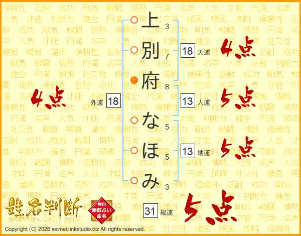 上別府なほみさんの総運は31画の5点!