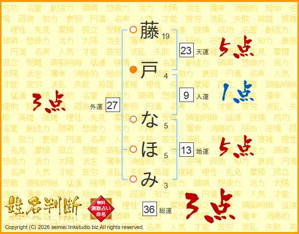 藤(19画)戸(4画) な(5画)ほ(5画)み(3画)