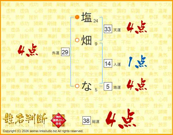 塩畑なさんの総運は38画の4点!
