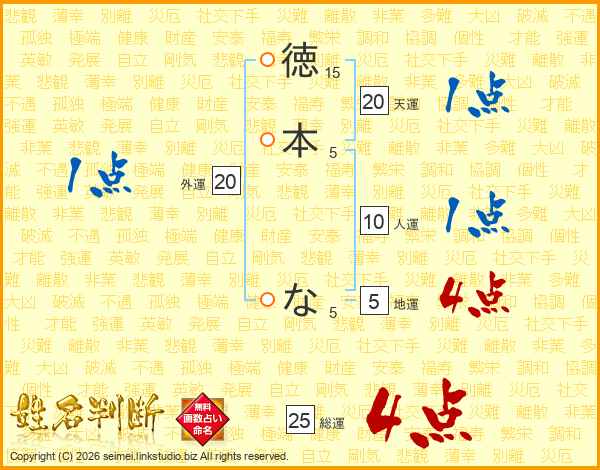 徳本なさんの総運は25画の4点!