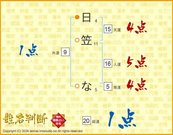 日笠なさんの総運は20画の1点!