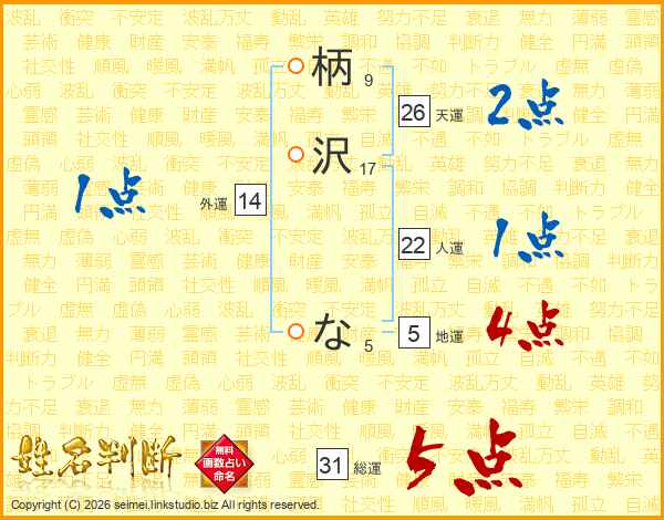 柄沢なさんの天運は26画の2点!