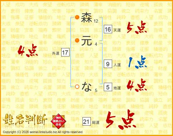 森元なさんの総運は21画の5点!