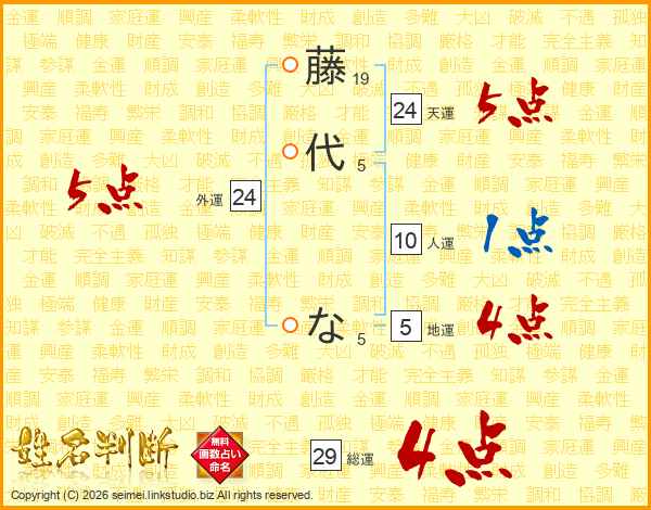 藤代なさんの天運は24画の5点!