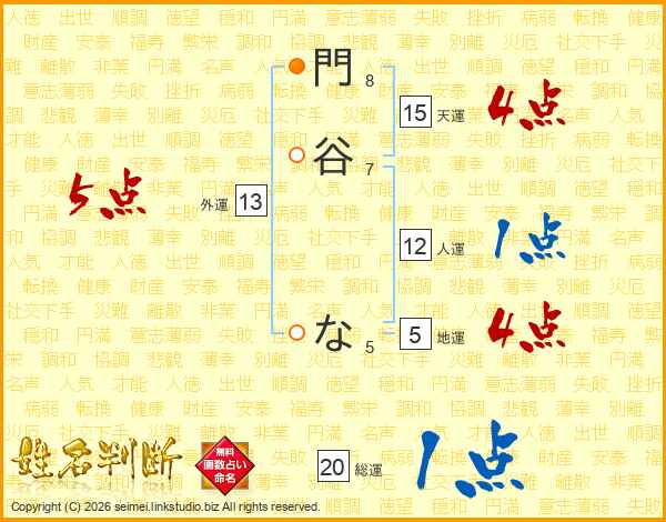 門谷なさんの天運は15画の4点!