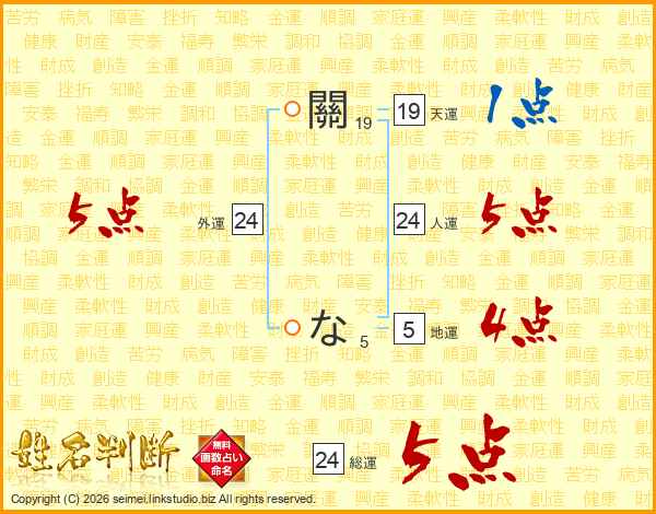 關なさんの人運は24画の5点!