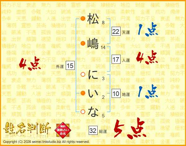 松嶋にいなさんの総運は32画の5点!