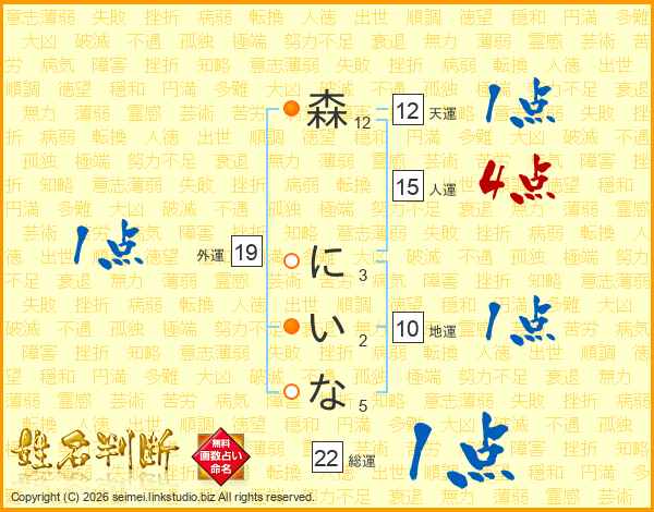 森にいなさんの総運は22画の1点!