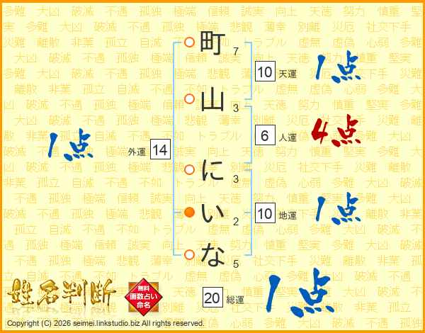 町山にいなさんの外運は14画の1点!