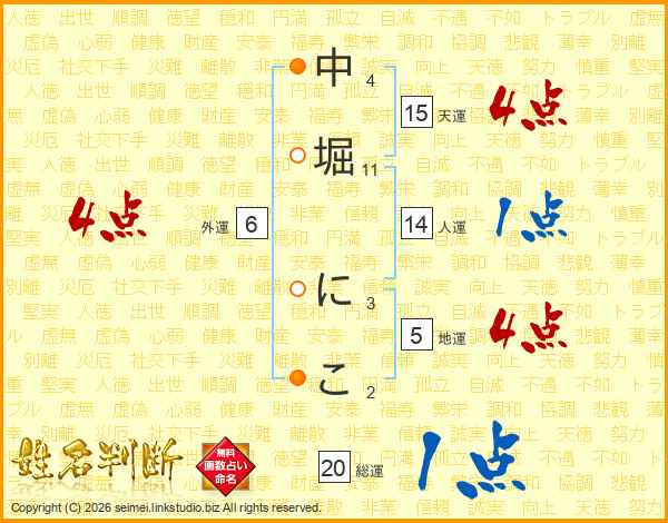 中堀にこさんの天運は15画の4点!