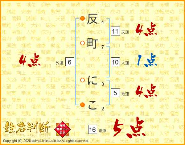 反町にこさんの総運は16画の5点!