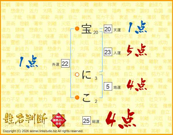 宝にこさんの総運は25画の4点!