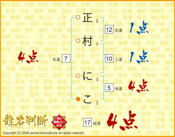 正村にこさんの総運は17画の4点!