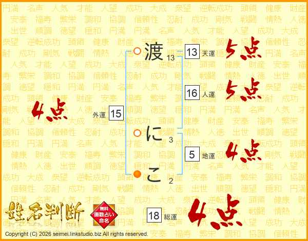 渡にこさんの総運は18画の4点!