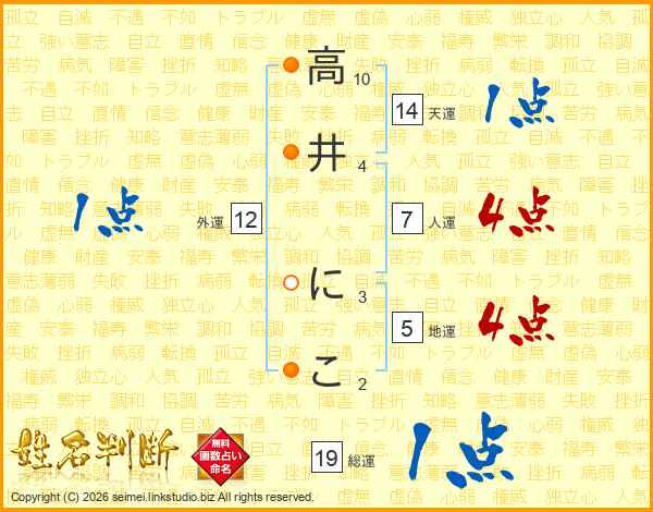 高井にこさんの総運は19画の1点!