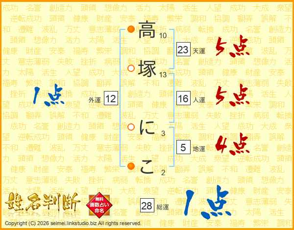 高塚にこさんの天運は23画の5点!
