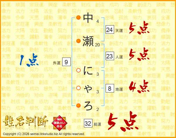 中瀬にゃろさんの総運は32画の5点!