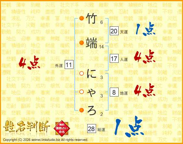 竹端にゃろさんの総運は28画の1点!